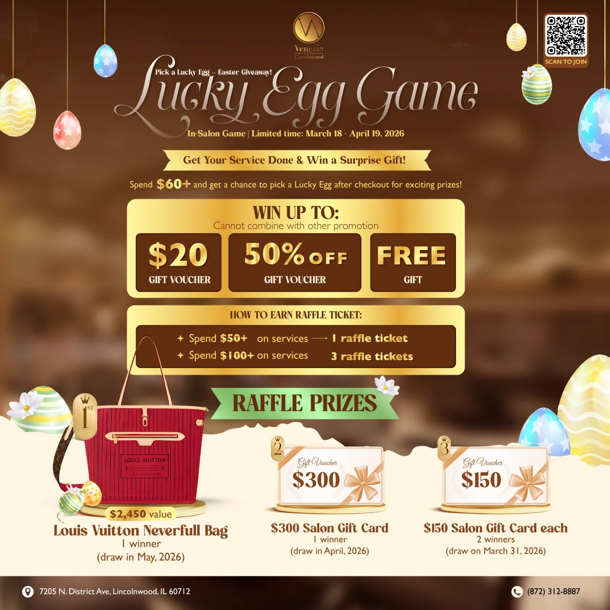 💅 Spend $60+ on services and pick a Lucky Egg after checkout to reveal prizes such as: