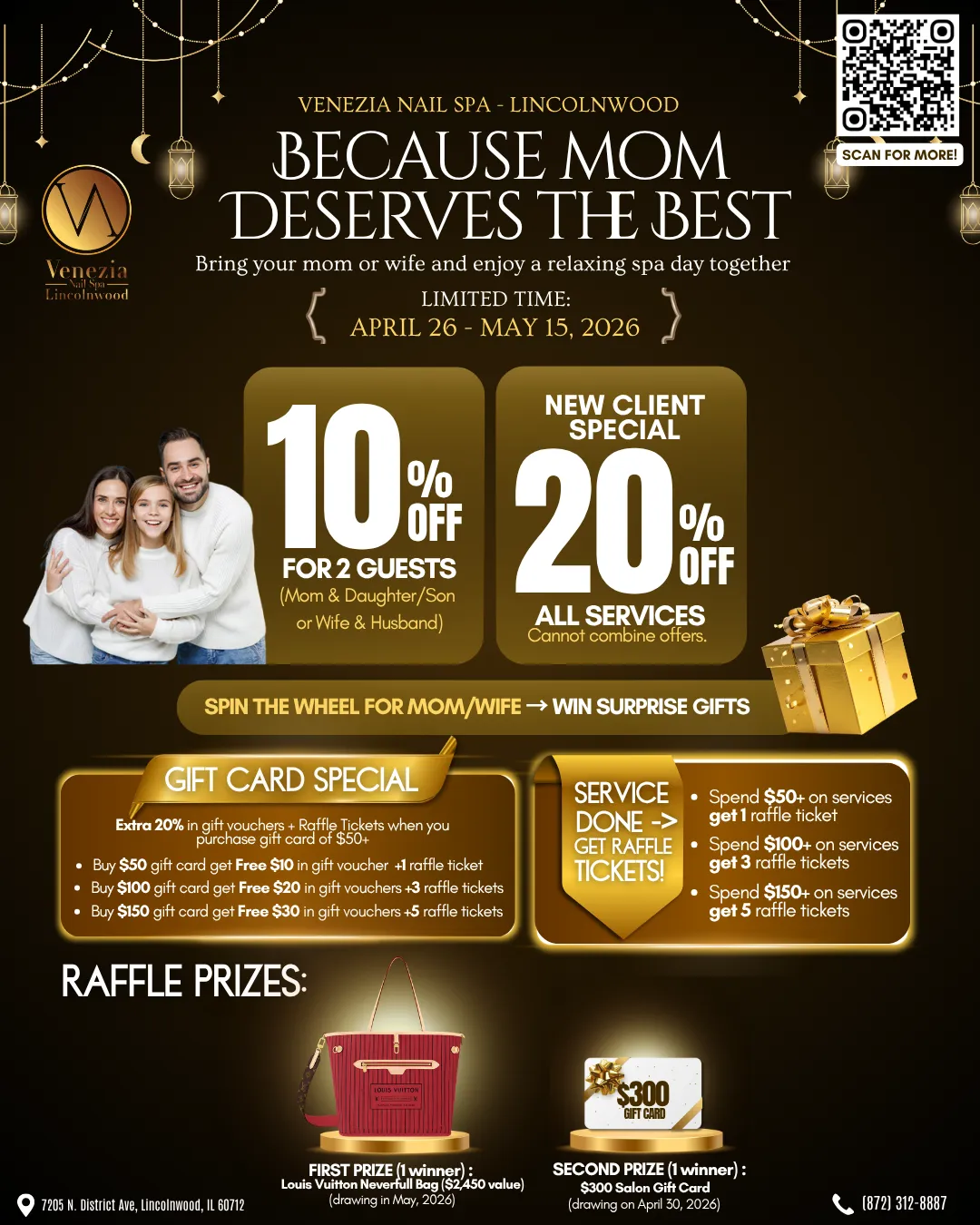 This is the form for you to fill out to receive our Mother's Day Specials. After filling out we will redirect you to our online booking page. Please book an appointment from there. We might need to call to confirm. Valid from April 26 - May 15, 2026.